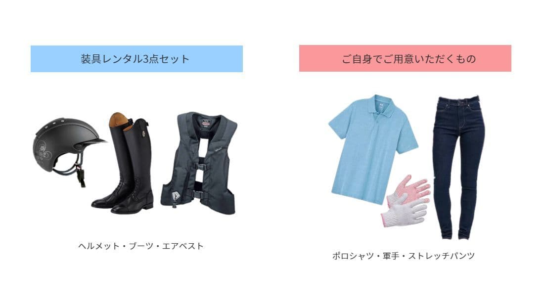 体験レッスンの際には、ポロシャツなど襟のあるシャツにストレッチ素材のデニムなど動きやすい長ズボンを着用してください。また軍手など滑り止めのついた手袋をお持ちください。