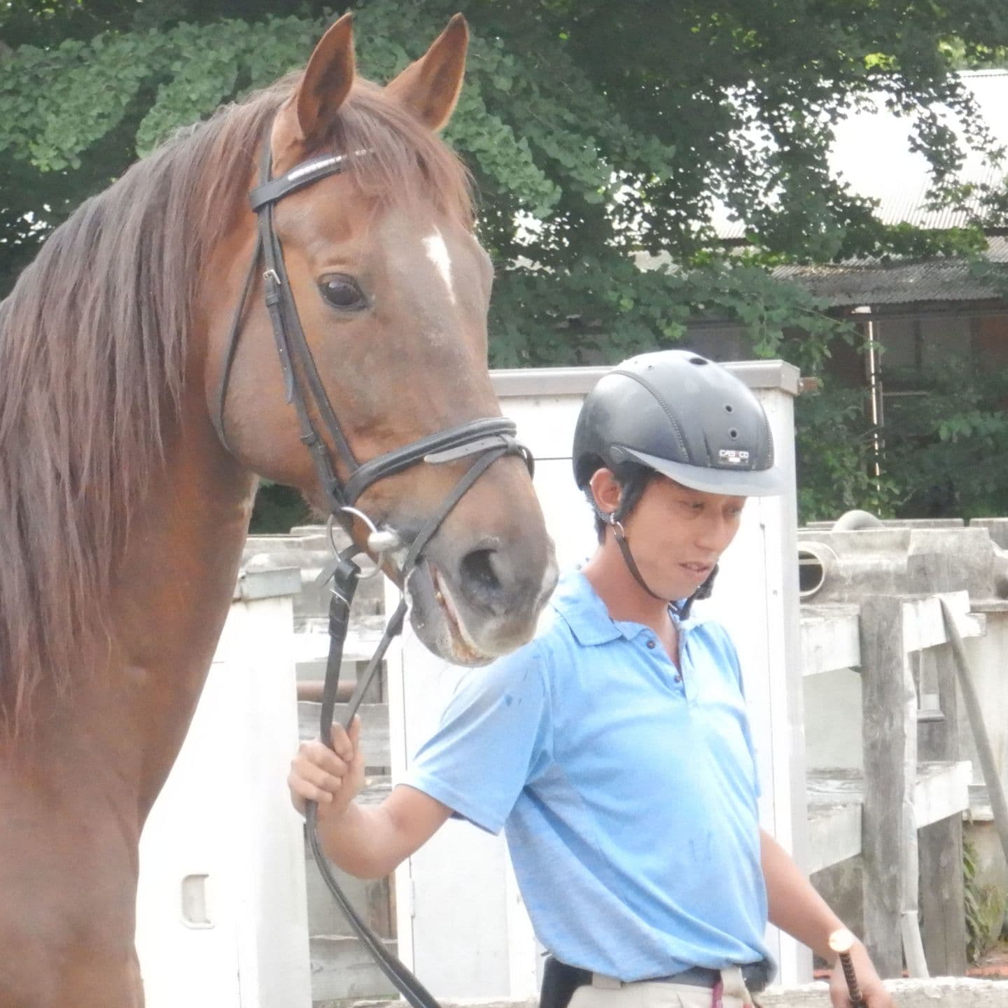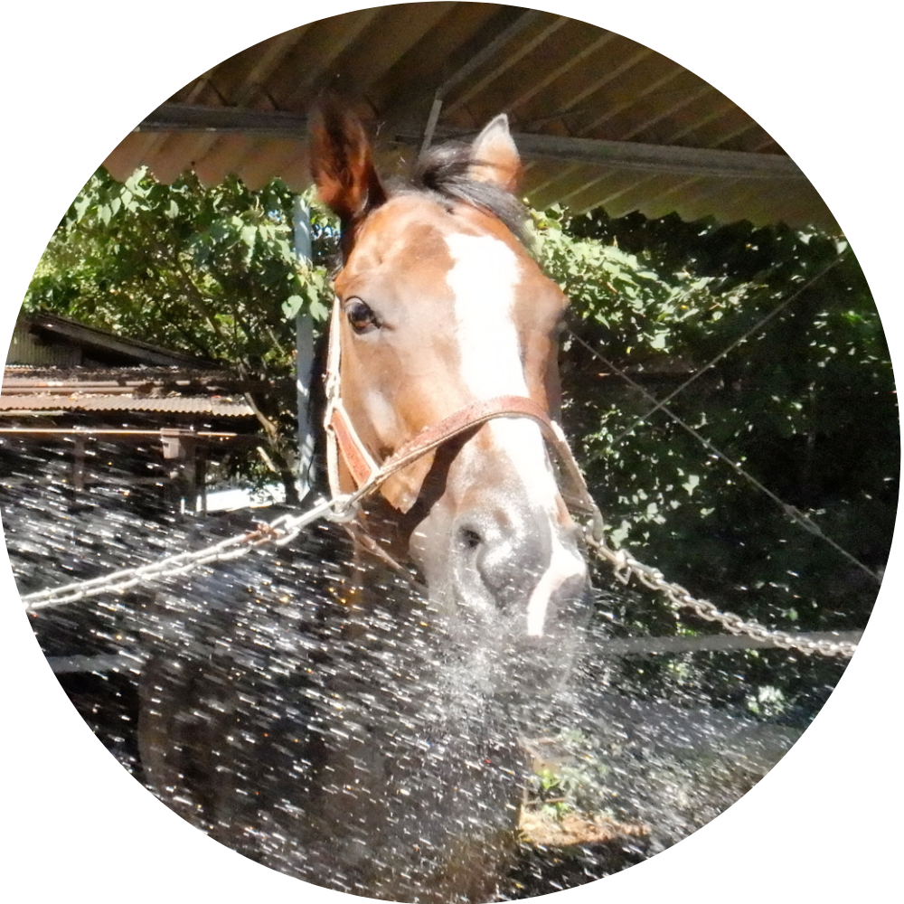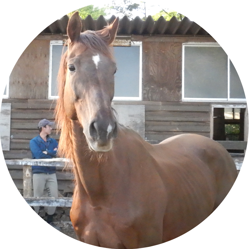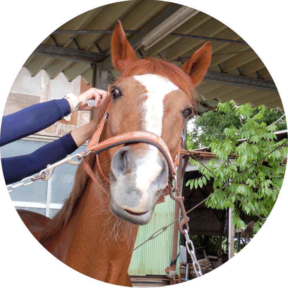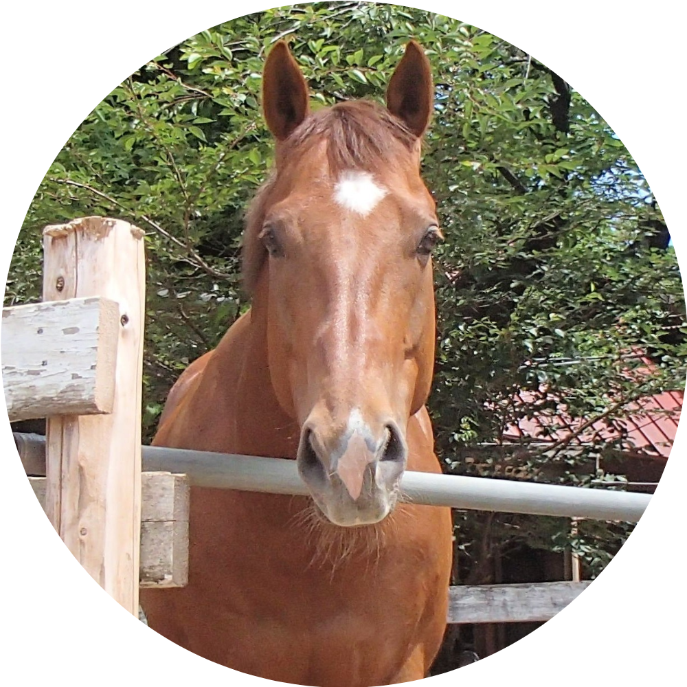 馬場馬術の競技馬として頑張ってきた看板Horse!今は競技は引退しましたが、本人(?)はまだまだやる気満々。故障を抱えているので体調を見ながらですが、馬場レッスンや牧場イベントでは頑張ってくれています。