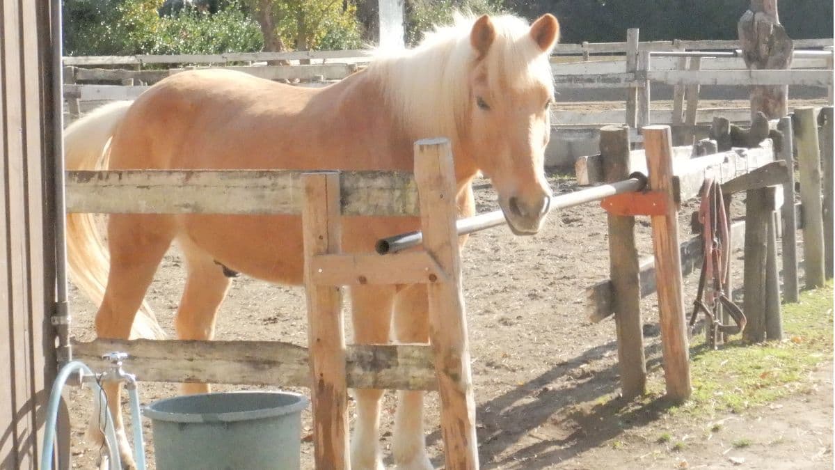 牧場でたった1頭の外国産馬!ベルギー産まれのKWPNです。現役時代は130cmもの障害を飛んでいましたが今はすっかり落ち着いて、その可愛らしさで牧場のアイドル。